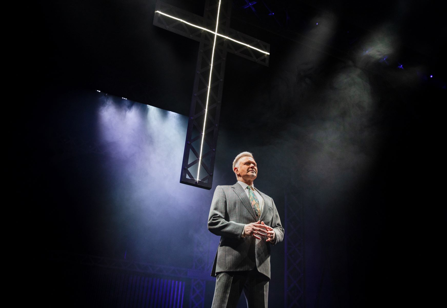 Darren Day is superb in the role of Rev. Moore. A well-seasoned and highly experienced performer, Day portrayed a softer character than John Lithgow’s counterpart in the movie, with an honest range of emotions of a man who is conflicted as a protective father and town leader while struggling to deal with his own loss.