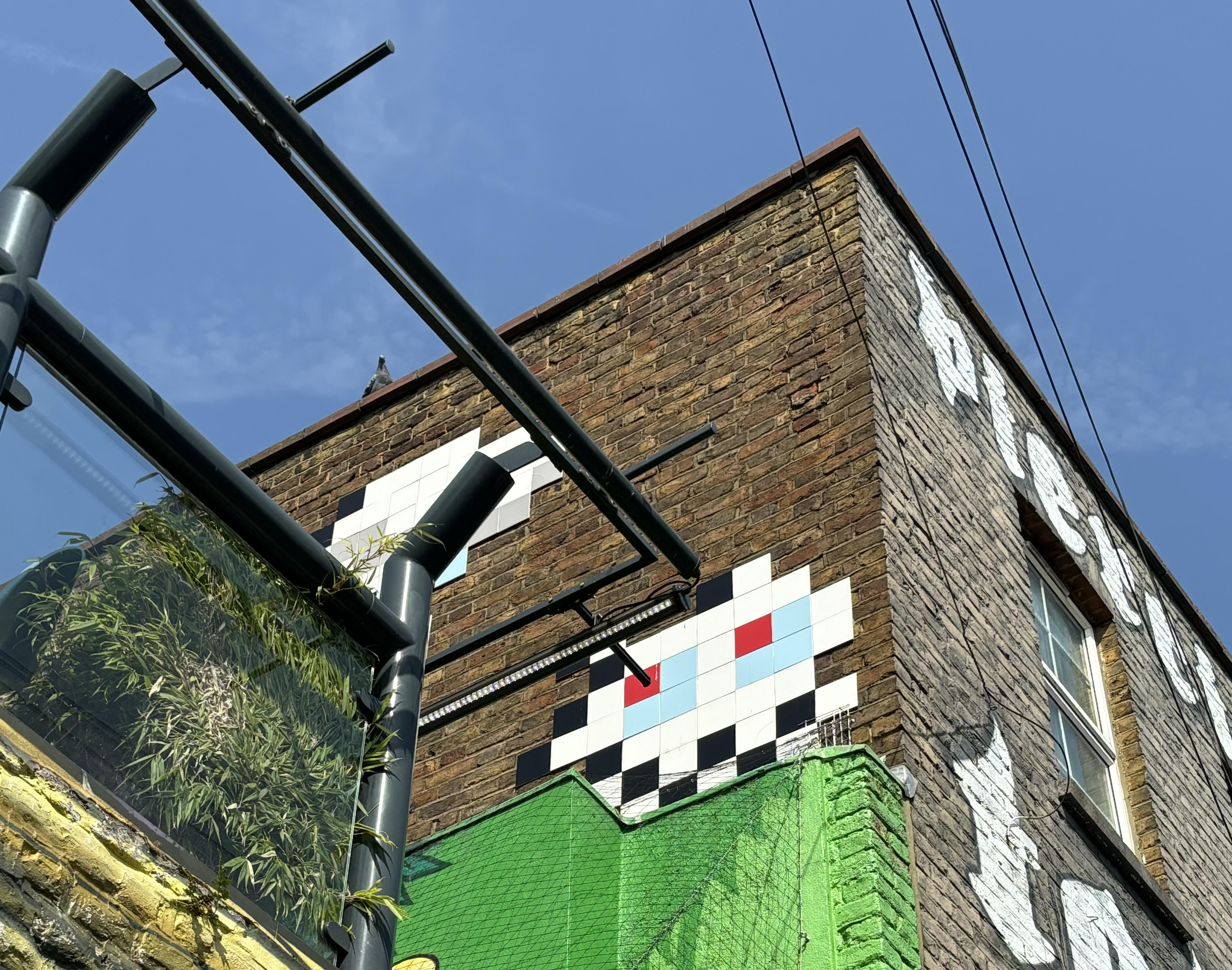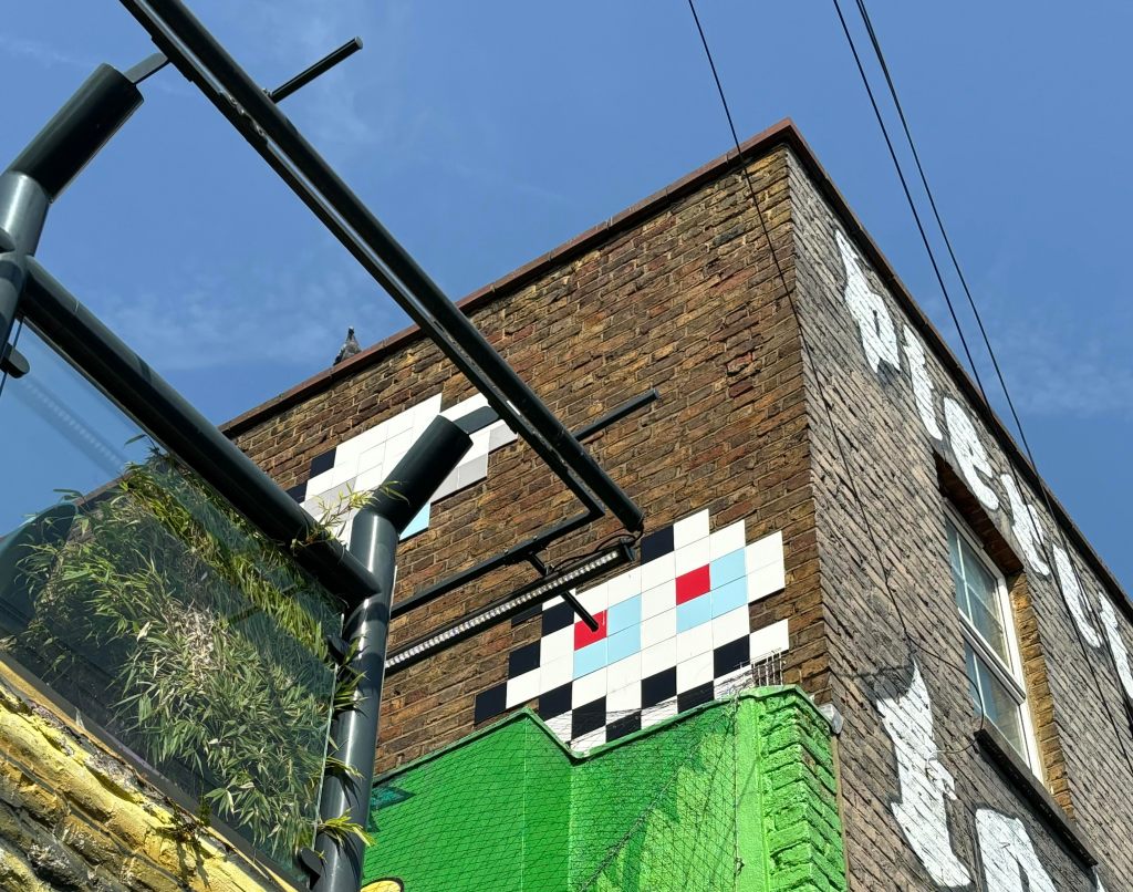 After about four hours, my feet were hurting (partially because they hadn’t recovered from the three hours of dancing the night before), it was really hot and there were so many people that it was becoming difficult to move, so we decided to make our way back. I was delighted to randomly stumble across one of the space-invaders art work, (I love street art and have been on tours in other areas of London), but was gutted that someone had tagged across a Mr Cenz work just down the road.